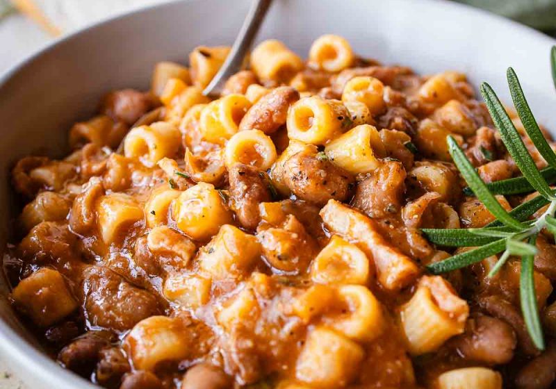 Classic Italian soup in tomato broth loaded with cannellini beans, ditalini pasta, and vegetables.